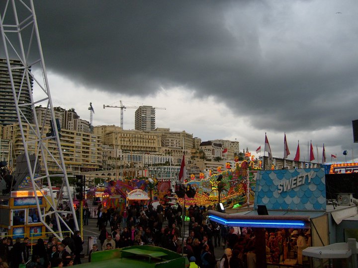 What’s happening here? Storm over a street fete in Monte Carlo.