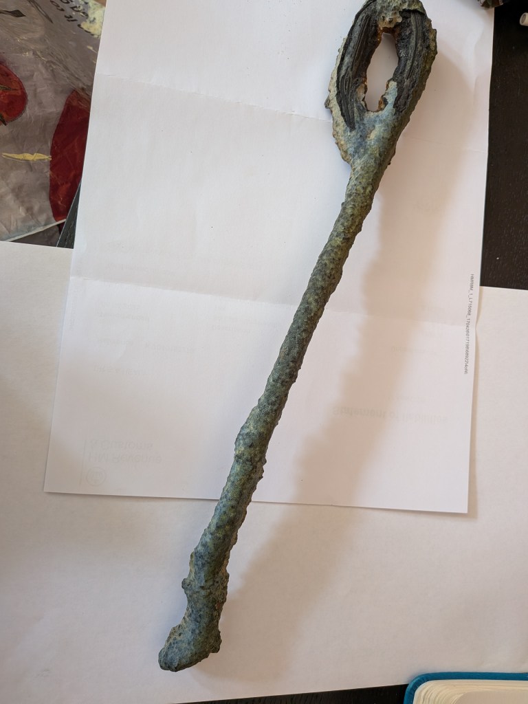 The next most interesting piece is what I thought was an old poker or part of a Victorian railings perhaps. It’s clearly been in the river a long long time though. I cleaned it and it’s a Georgian mooring pin, hand forged. Not an antiquity, or of any value really, other than it’s a great example of working river hardware, and representative of the context in which it was found. It was likely used to moor a private boat belonging to one of the Georgian houses in the parade above the bank, the closest of which was built for a mistress of the king. I wonder what pulled it from its root, what storm or getaway? Therein lies a story.